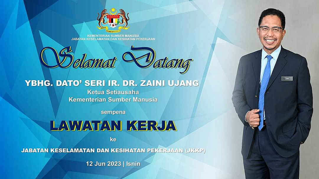 Jabatan Keselamatan dan Kesihatan Pekerjaan telah menerima lawatan rasmi daripada Ketua Setiausaha Kementerian Sumber Manusia, YBhg. Dato' Sri Ir. Dr. Zaini Ujang pada 12 Jun 2023.
