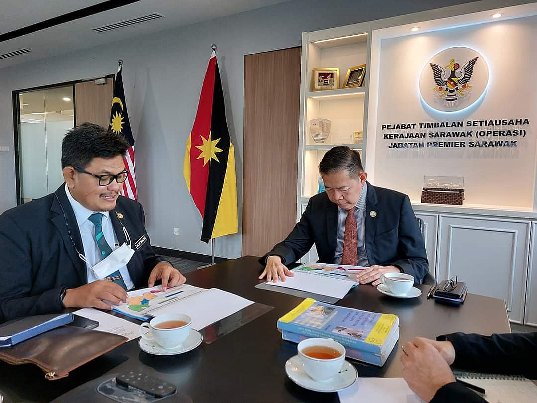 Kunjungan Hormat Tuan Pengarah JKKP Sarawak, Ir Dr. Nor Halim bin Hasan bersama-sama pegawai JKKP Sarawak ke Pejabat Timbalan Setiausaha Kerajaan Sarawak (Perancangan Ekonomi dan Pembangunan), YBhg. Datu Dr. Muhammad Abdullah Bin Haji Zaidel. Tujuan lawatan ini diadakan adalah untuk menerangkan maklumat berkaitan jabatan kepada pihak kerajaan negeri serta menjalinkan kerjasama terutama dalam meningkatkan tahap KKP di Sektor Awam.