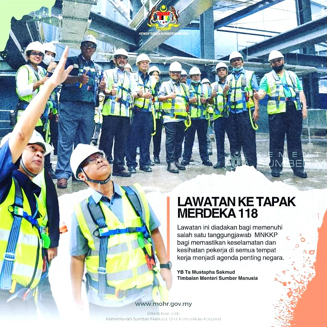 Lawatan Kerja Timbalan Menteri Sumber Manusia selaku Pengerusi Majlis Negara Bagi Keselamatan Dan Kesihatan Pekerjaan Malaysia (MNKKP) ke Tapak Projek Merdeka 118.